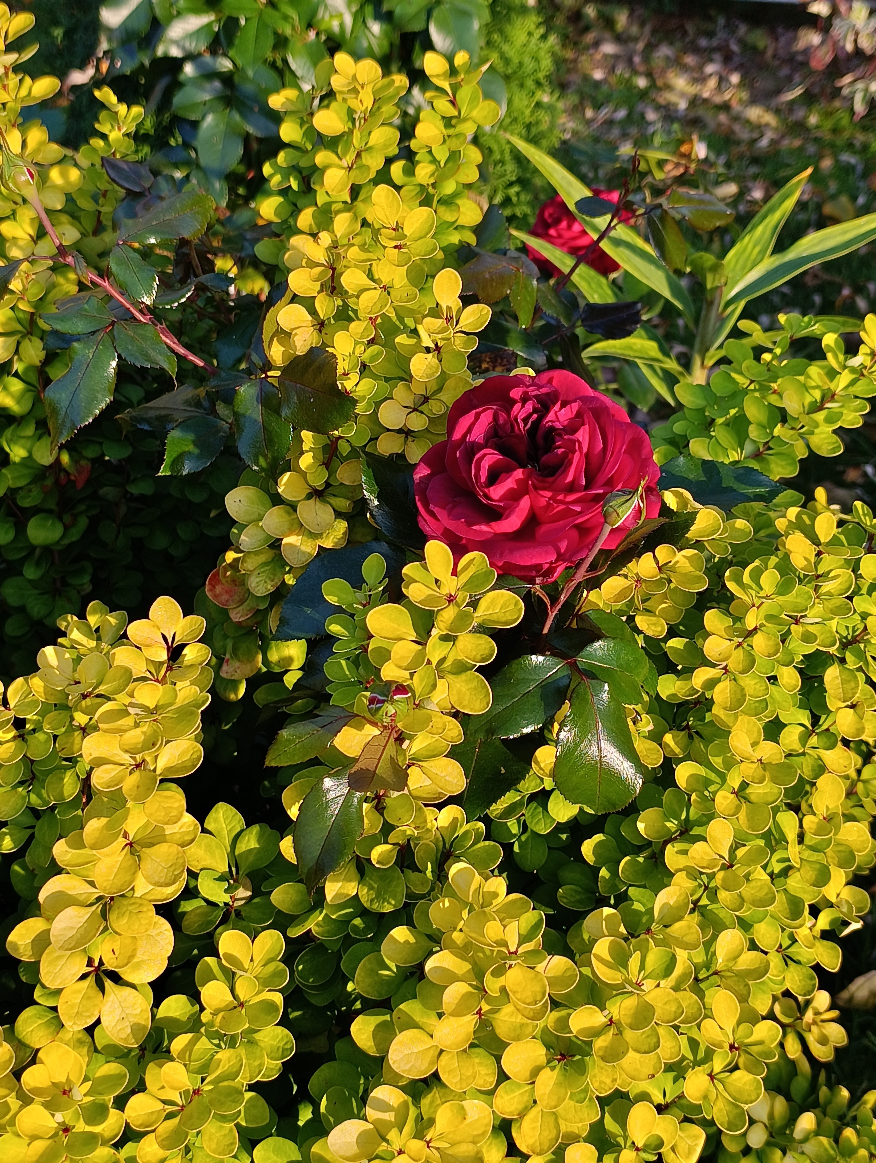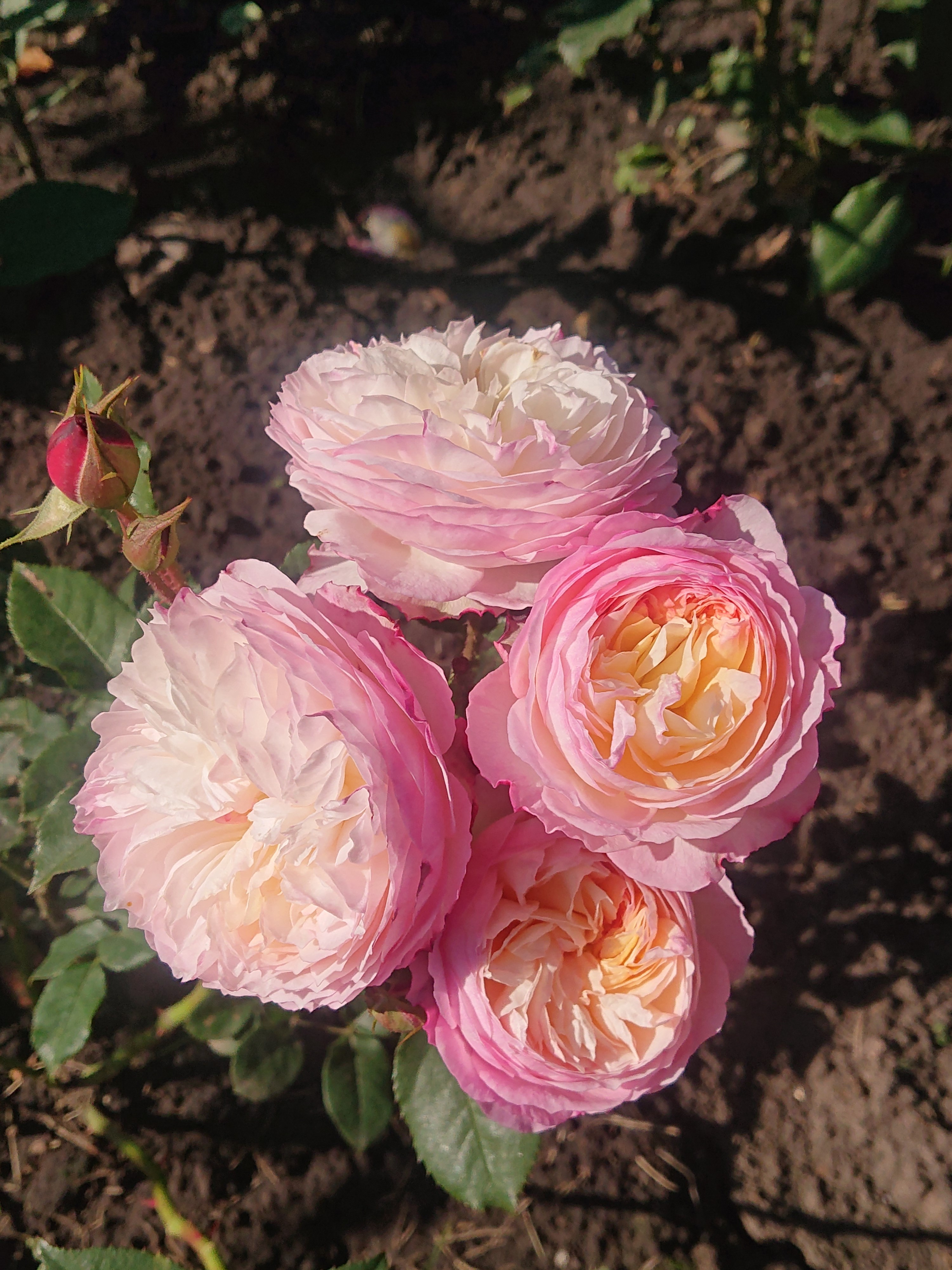 Роза загадочная стесняшка, бутоны долго остаются шариками, так мило и необычно, на солнце приоткрываются, с вечерним похолоданием опять смыкаются в крупный помпончик. Посадка май 2025, весь сезон цвела, думаю из-за этого кустик не нарос, весь ушёл в цвет.