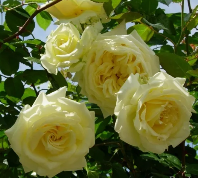 Эта плетистая роза просто великолепна! Её огромные, густомахровые цветки зеленовато-белого оттенка станут настоящим украшением вашего сада. Каждый цветок диаметром 12 см состоит из 50-60 лепестков и обладает приятным фруктовым ароматом. Цветение происходит на побегах второго года.