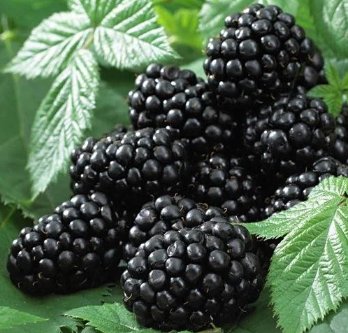 Ягоды округло-вытянутые, не особо крупные, весом до 6 - 8 грамм и собраны в кисти, по 13 - 16 штук в каждой. В стадии технической спелости — кисло-сладкие на вкус, при полноценном созревании становятся слаще и приобретают черный глянцевый блеск. Плодоношение у сорта Блэк Сатин наступает намного раньше, чем у других поздних сортов - с конца июля или начала августа (в зависимости от региона) и длится до поздней осени. Высокая урожайность отмечается уже на второй год после посадки. С куста в возрасте 4 - 5 лет собирают 10 - 15 кг ягод, а при хорошей агротехнике – до 25 кг. Как и остальная ежевика, сорт Блэк Сатин устойчив к болезням и вредителям. Укрытие необходимо.