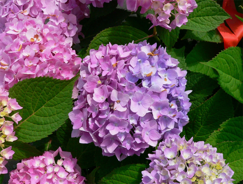Цвести «Вечное лето» начинает на второй год жизни. Соцветия крупные, шарообразной формы, до 15 см в диаметре. Лепестки могут быть розоватыми или нежно-синими, оттенок регулируется изменением рН почвы.