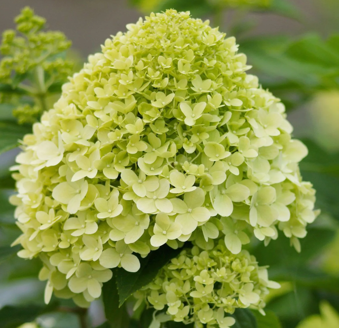 Популярная гортензия Лаймлайт завоевала признание благодаря своей уникальной окраске. Крупные соцветия отличаются приятным лимонным оттенком в начале цветения. Со временем оттенок меняется на кремово-белый, а в конце сезона соцветия окрашиваются в светло-розовый. Форма соцветий — коническая, а их размер достигает 30 сантиметров.