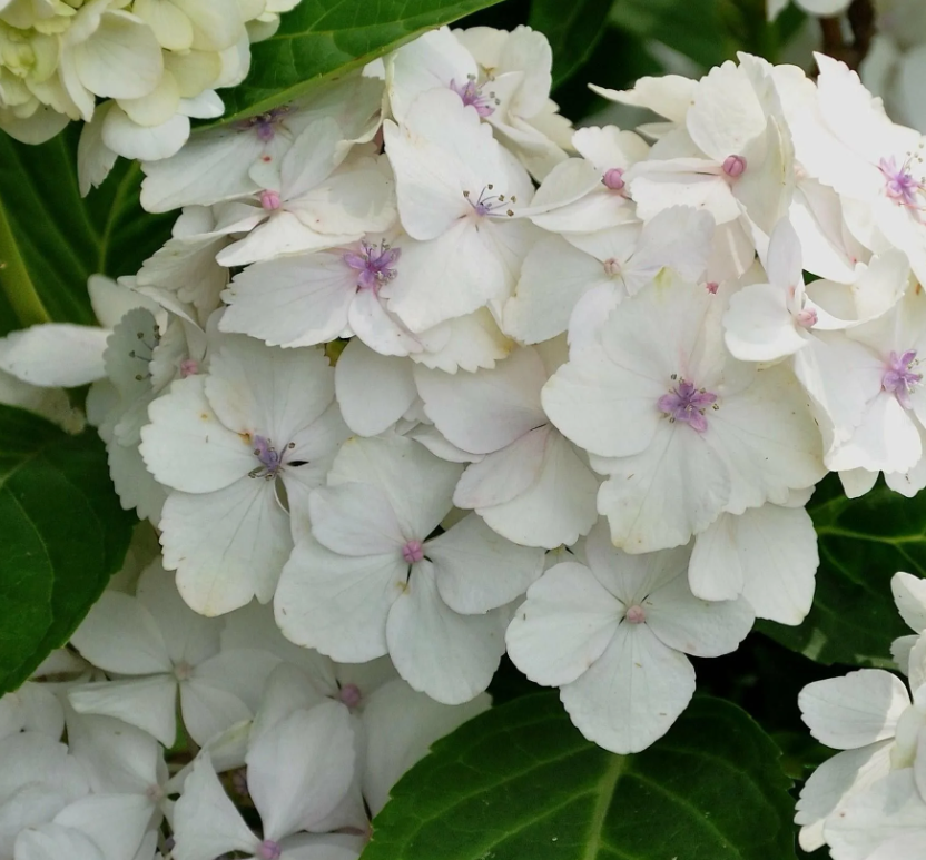 Гортензия Мадам Эмиль Мулье – популярный, проверенный временем сорт, отличающийся обильным пышным цветением, округлым кустом с крупными листьями. Соцветия округлой формы, размером 20 - 30 см, с бахромчатыми нежными цветками, меняют окраску на протяжении цветения от нежно-белой до светло-розовой с розовым или голубым глазком. В каждом цветке по 4 лепестка. Кусты имеют высоту до 120 см, ширину 80 - 100 см.