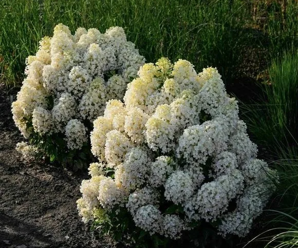 Главная особенность этого сорта – обильное цветение. Соцветия, похожие на конусовидные метелки диаметром 15-20 см, располагаются на верхушках побегов. Сначала цветки нежно-кремовые, затем розовеют, а основная окраска остается белой. Цвет соцветий меняется в течение сезона.