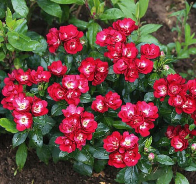 Роза Иониум прекрасно подходит для групповых посадок. Её насыщенные красные цветы украшают сад всё лето. Иониум — популярный почвопокровный кустарник. Высота — от 50 до 70 см, ширина — от 80 до 120 см. Раскидистая форма, стелющиеся или поникающие побеги. Зелёные листья с светлыми жилками имеют ланцетную форму. Ярко-красные цветки, диаметром 3–4 см, собраны в соцветия. Преимущества розы: обильное цветение, морозостойкость (до -34°C), устойчивость к болезням и вредителям.