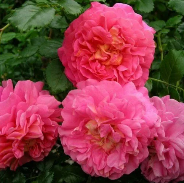 Совершенно новый цвет среди английских роз! Внутренние лепестки интенсивного оранжево-розового цвета изнутри, золотисто-жёлтые с розовым оттенком снаружи, а в центре — жёлтая «пуговка». Это создаёт красивый двуцветный эффект. Соцветия достигают 8 – 10 см в диаметре, а количество лепестков может достигать 110 штук, что делает этот сорт густомахровым. Все цветки собраны в соцветия по 3 – 5 штук. Кусты не вырастают большими, но они густые, с раскидистыми ветками. Высота розы составляет в среднем 1 метр, а ширина кроны — 80 см. Эта роза непрерывно цветущая, поэтому бутоны образуются в течение всего летнего периода и распускаются поочерёдно. Листва зелёная, блестящая, мелкая и очень устойчива к заболеваниям.
