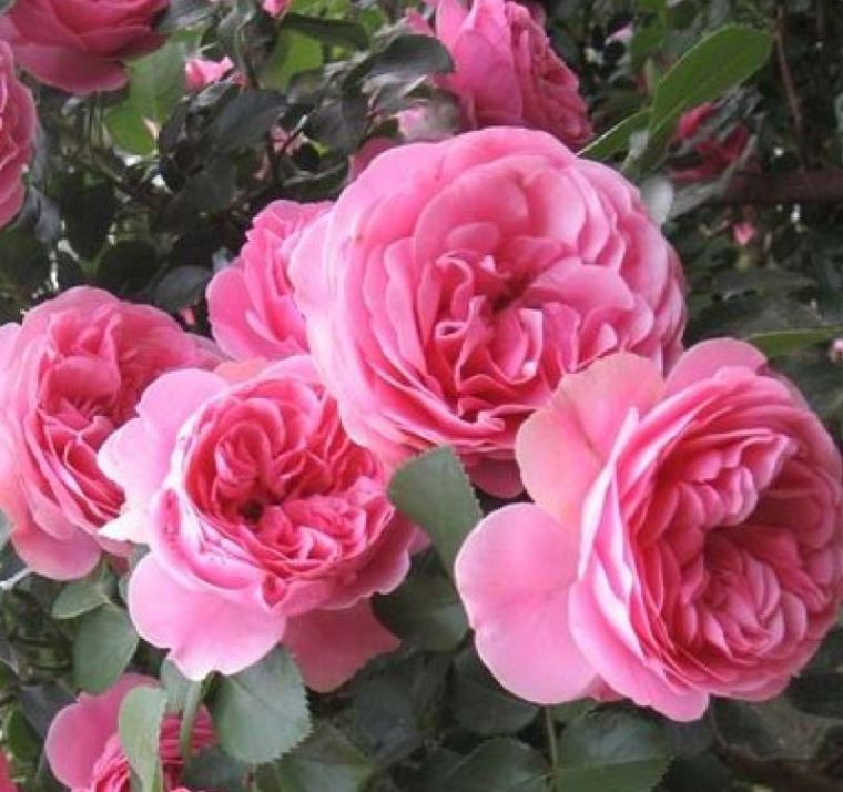 Соцветия ярко-розового цвета имеют чашевидную форму и чарующий аромат, напоминающий мускат. Крупные глянцевые листья дополняют общую красоту растения. Бутоны с немного загнутыми краями состоят из множества лепестков. При полном раскрытии края светлеют, а сердцевина остается насыщенно-розовой.