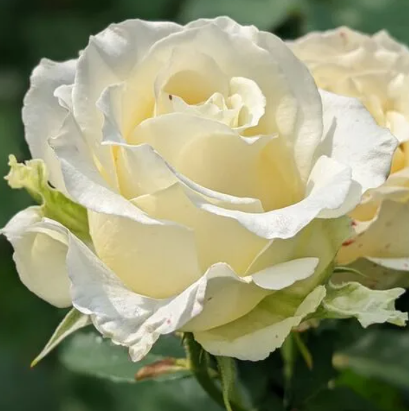 На стебле только один цветок. Бутоны правильной формы сначала превращаются в цветы классической бокаловидной формы среднего размера. Диаметр большинства цветов — от 5 до 7 см, у каждого от 26 до 40 лепестков. Цвет белый и кремовый, аромат приятный, но не такой интенсивный, как у других сортов. Цветение начинается в июне и продолжается до сентября, захватывая первые осенние дни. Бутоны распускаются медленно, но обильно.