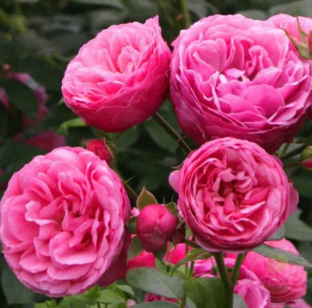 На одном цветоносе образуется от 5 до 15 ярко-розовых бутонов в форме шара, диаметр которых не превышает 5 см. Каждый густомахровый бутон состоит из 80-85 лепестков. На взрослом растении может распуститься от 15 до 18 цветков, источающих нежный, едва уловимый аромат с цветочными нотками.