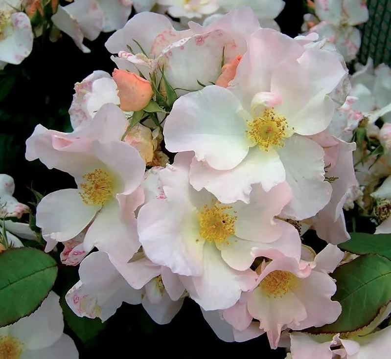 Тип цветков – простой, с 4-8 лепестками в каждом. Диаметр – от 7 до 9 сантиметров. Розы растут в соцветиях, на каждом стебле от 10 до 30 бутонов. Аромат присутствует, но он слабый.