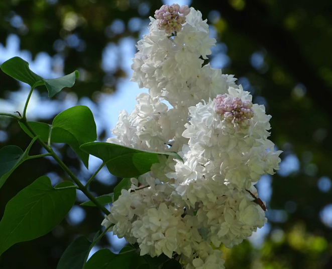 Лепестки сирени овальные, имеют приподнятые края, кончики их загнуты. Соцветия очень крупные, даже массивные, включают две-три пары метёлок в форме пирамиды или конуса, размером 25 см. При этом отличаются стройностью, ажурностью и лёгкостью.