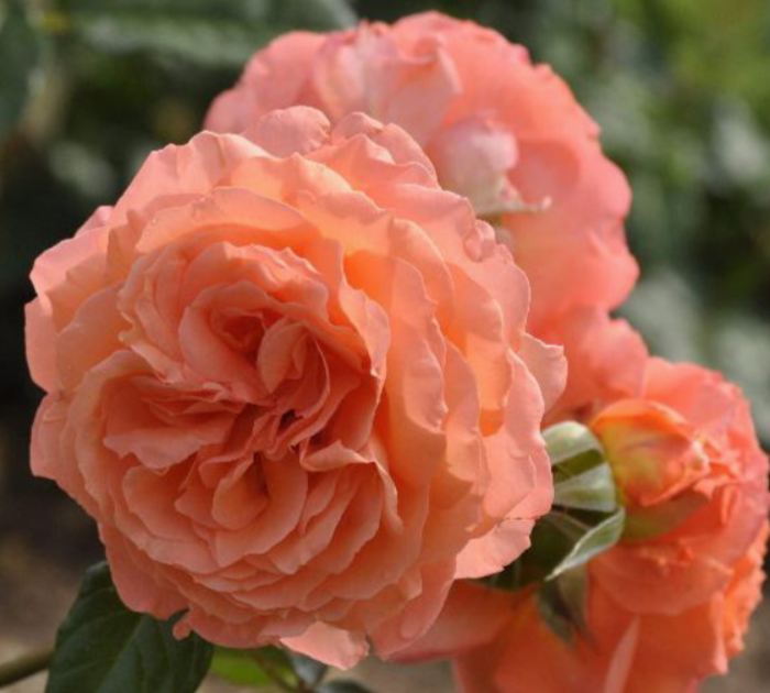 Бутоны темно-оранжевые, по мере раскрытия светлеют до оранжево-персикового оттенка. Цветы крупные, диаметром 10-12 сантиметров, иногда до 13 см. Они густомахровые, с 80-95 лепестками. На стебле обычно 1-2 цветка, реже три. Аромат терпкий, с восточными нотками, средней интенсивности.