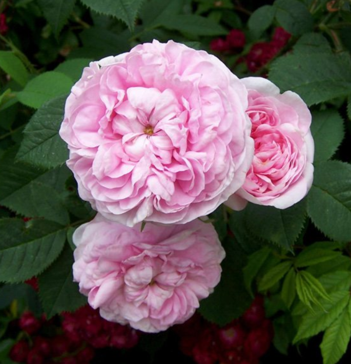 Кёнигин Фон Денемарк — знаменитый сорт шиповника, выведенный путем скрещивания розы «Alba» и душистой дамасской розы. Этот кустарник имеет двухсотлетнюю историю, его официальное рождение датируется 1816 годом. Куст раскидистый и мощный, достигает полутора метров в высоту и метра в ширину. Прочный каркас и крепкие побеги придают ему эстетическую привлекательность и архитектурные формы. Во время цветения побеги нежно поникают, создавая романтическую атмосферу. Обильное цветение и душистый аромат привлекают к кустарнику внимание в начале лета. Густомахровые сложные цветки напоминают рельефы старинных платьев девушек XVII-XVIII веков. Они густо опушены и достигают до 10 см в диаметре. Аромат цветков сильный.