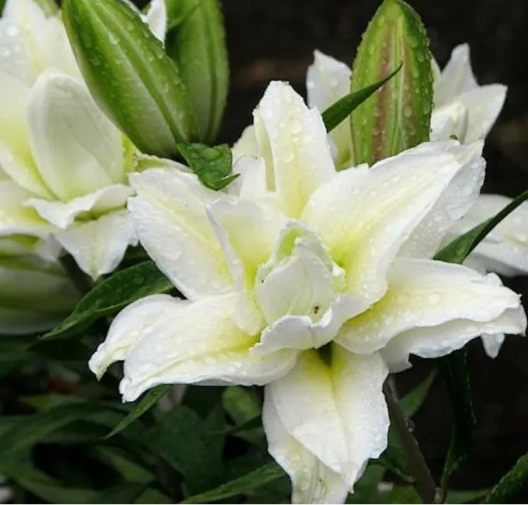 Лилия Ramona отличается своей элегантностью. Имеет мощный цветонос с темно –зелеными листьями, на котором распускаются большие махровые цветки нежно-молочного оттенка с очень легким розовым отливом. Лепестки крупные и плотные, с чуть волнистыми краями. Сорт достаточно высокий, до 150 см в высоту, а также имеет сладкий, сильный аромат. Луковицы растения лучше всего садить в рыхлую, плодородную, хорошо дренированную слабокислую почву.