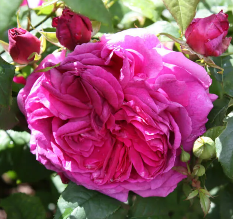 Цветки крупные, диаметром 8-12 см, чашевидные и густомахровые. Каждый цветок содержит до 90 мелких лепестков. Их цвет — розово-сиреневый, оттенки варьируются от нежно-розового до насыщенного красного. Внешние лепестки выгорают на солнце до нежно-пурпурного оттенка, а изнанка у них серебристая. На одном стебле может быть от одного до трех бутонов.
